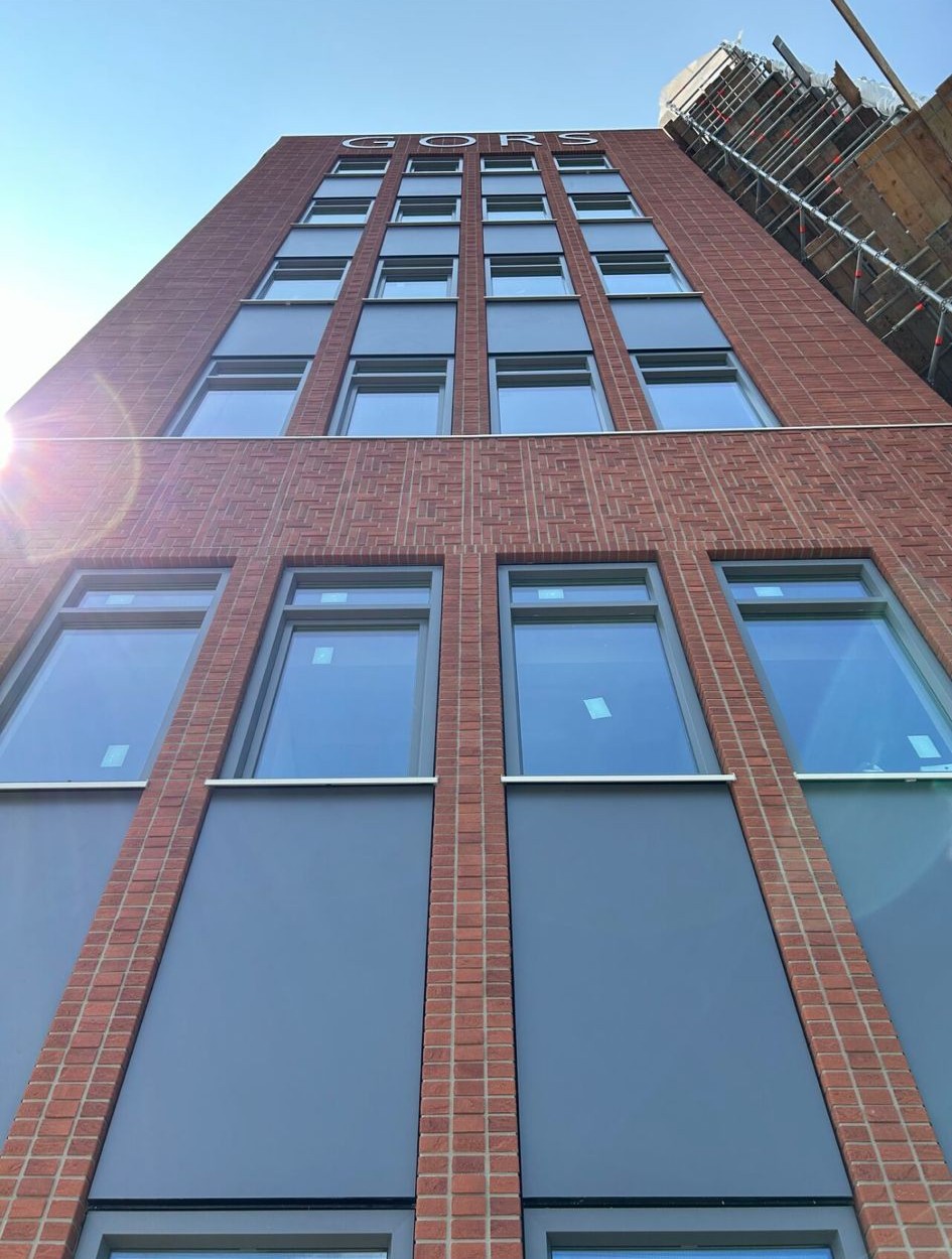 Gevel volledig gereinigd van een kantoorpand door Metsel Gigant.